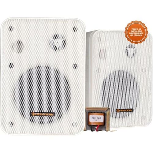 Caixa Acústica Com Trafo 210v(15w) Ambience Line Msb60nc Branca Hayonik - Par / 2 A linha de Caixas Ambience Line da HAYONIK pertencem a um sistema de caixas acústicas para instalação na maioria dos ambientes. Conta com um sistema em 2 Vias, onde dispõe de woofer de 4 para uma grande faixa de frequências, um tweeter de 0,5 onde a resposta em frequências altas é bem mais eficaz. Dispõe também de um sistema com alto-falantes de cone com suspensão, onde o local quer mais atenção em frequências baixas, além de já vir com o trafo de 210V instalado internamente. Esta Caixa Ambience Line MSB60NC da HAYONIK possibilita um perfeito sistema para sonorização de ambiente pequeno, médio a grande porte. Seu sistema é altamente versátil e com uma excelente relação custo-benefício.Cor:Branca Alto Falantes:Woofer de 4 e 1 Tweeter de 0,5 Potência:15W RMS Impedância:210V Resposta Frequência:100Hz~20kHz Pesquisa:caixa|acustica|trafo|embutido|210|ambience|line|MSB|MSB60NC|