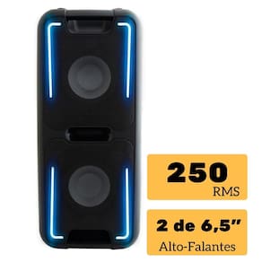 Caixa com incríveis 250w RMS de potência e dois alto falantes de 6,5 polegadas que vão tremer a sua casa!