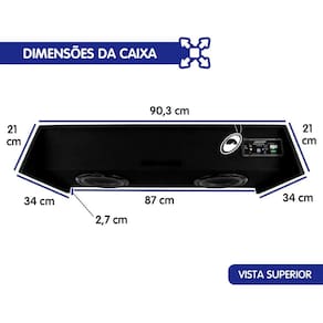 ESPECIFICAÇÕES TÉCNICAS: - Potência de RMS total: 400 Watts; - Resposta de frequência senoidal THD 0.01% : de 20 Hz a 100 Hz -3dB ; - Filtro Low Pass: 24 dB/oitava; - Alto falante 8: 200 Watts; - Amplificador digital: 400 Watts; - Caixa: Madeira MDF; - Distorção máxima de saída THD : 0.03%; - Proteção de temperatura: 80C; - Consumo máximo: 30A; - Tensão de operação voltagem de entrada de funcionamento : 10Vcc a 15Vcc; - Tensão de proteção voltagem de entrada limite : 8.0vcc a 16Vcc; - Sensibilidade de entrada RCA sinal de áudio necessário para obter potência máxima : 0.5vrms a 5Vrms; - Peso: 11,600 Kg.