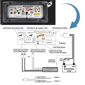 PRINCIPAIS CARACTERÍSTICAS: - Caixa em madeira MDF; - Entrada de Áudio de baixa impedância via fio e alta impedância RCA; - Acionamento automático por áudio na entrada de baixa impedância.