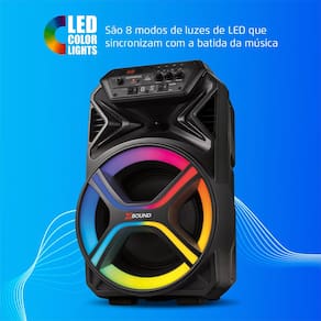 Duplique o som e a luz da festa: A função TWS permite conectar duas caixas iguais sem uso de fio. Assim, música e iluminação ficam sincronizadas para todo mundo dançar no mesmo ritmo.