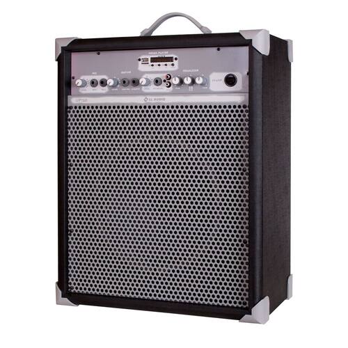 Esta caixa multiuso ll audio amplifica, misturam os audios e reproduz sinais de áudio e voz. permite a ligação de microfone, aparelhos de reprodução de áudio como dvd, cd, tv, videokês, etc. Possui entrada usb para utilização de pendrives com músicas em arquivo mp3 ou wma e de sd card. Tecnologia bluetooth, conecte seu celular diretamente na caixa e escute suas músicas preferidas. Potência de 65 w rms com falante de 10 polegadas Fm com antena fio 3 canais sendo 01 para microfone, 01 para guitarra elétrica ou acústica, violão ou viola elétrica, 1 entrada para teclado mais uma entrada auxiliar em conector rca. Altura dela é de 53 cm por 43 cm de largura e 26 cm de profundidade com um peso de 10,8 kg. Alimentação: 127/220 V com chaveamento manual Homologação Anatel: 079902113999 Ean: 7898623882492