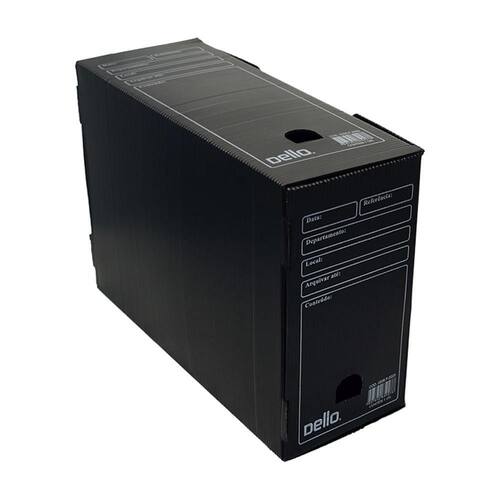 Caixa em plástico corrugado no tamanho ofício. Possui 3 áreas em diferentes posições de identificação.