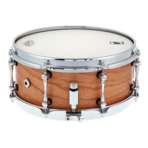 Caixa Black Panther Cherry Bomb 14? x 6?, casco de 9mm em Cherry Wood (Cerejeira), acabamento natural, 10 afinações, aros SonicSaver™ 2.3mm, esteira Puresound custom series 16 fios e ferragens cromadas.