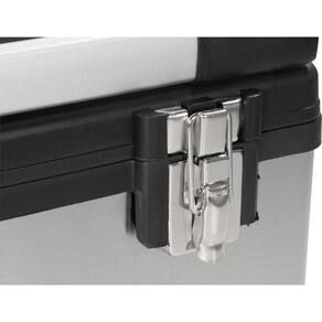 Confeccionada em aço inox, proporcionando excelente resistência à oxidação/corrosão. Possui bandeja interna, alça e 2 travas.