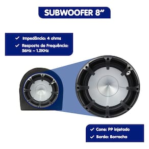 CARACTERÍSTICAS: - Fabricada em MDF resistente, garantindo durabilidade e melhor acústica; - Volume interno de 25 litros, ideal para graves potentes e profundos; - Borne de conexão na parte traseira, facilitando a instalação do subwoofer.
