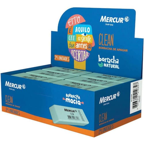 Borracha colorida clean verde mercur- caixa com 24 unidades Borracha colorida clean verde - caixa com 24 unidades Características: - não mancham o papel. - é mais macia, o que melhora a apagabilidade. - apaga escrita a lápis e lapiseira, indicada para qualquer graduação de grafite. - indicada para desenho. - seu formato chanfrado com quinas auxilia na precisão ao apagar. Borracha colorida clean verde mercur- caixa com 24 unidades Marca: Não Informado Ean: 7896342410347