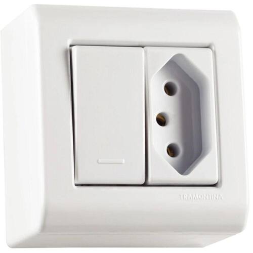 *CAIXA C/1 INTERRUPTOR SIMPLES+TOMADA 10A/250V TRAMONTINA.*A Caixa de Sobrepor com 1 Interruptor Simples 10 A 250 V e 1 Tomada 2P+T 10 A 250 V Tramontina LizFlex Branca é a escolha perfeita para levar versatilidade para seus ambientes e lhes garantir qualidade. Perfeita para quem busca o melhor para seus projetos, ela proporciona rapidez e flexibilidade em suas obras, já que sua instalação fica perfeita e não demanda transtornos como quebras de paredes e dispensa o uso de parafusos. Ela é fabricada em termoplástico na cor branca e é composta por caixa, tampa com encaixe de pressão e módulos. Além de contar com sistema modular, possui janelas para inserir canaletas de diferentes dimensões. Com a Tramontina, você tem a garantia de espaços funcionais e cheios de estilo!*IMAGEM ILUSTRATIVA**MARCA:TRAMONTINA*CÓDIGO:80321