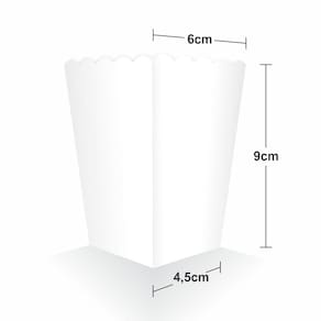 Caixa Caixinha para Pipoca Tamanho Mini 100 unidades BrancaModelo: brancaMaterial: cartão duplex Dimensões: 9cm altura x 4,5cm na base x 6cm na boca Itens inclusos: 100 unidades Seja em casa, no teatro ou cinema, a pipoca doce ou salgada é ainda mais gostosa em nossa caixinha para pipocas. Sua festa ou evento será um estouro e seu produto fará muito sucesso com nossas caixinhas de pipoca. Além de ser bonita, nossa embalagem para pipoca possui atributos que serão perceptíveis ao seu cliente, como a praticidade, a conveniência e a facilidade de consumo do seu produto. Também traz segurança, higiene e conforto para o seu cliente, além de demonstrar proteção ao seu produto. Marca: Pdv Print