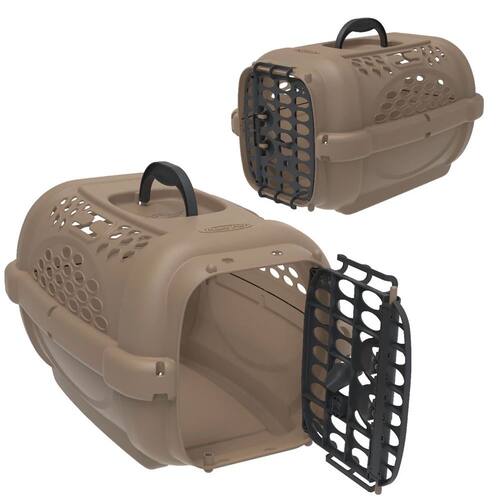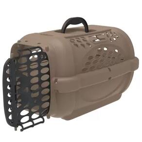 Possui sistema de travas duplas, passagem para cinto de segurança, aberturas para ventilação, parte inferior fechada para evitar vazamentos e espaço para bebedouro interno. Bebedouro vendido separadamente.