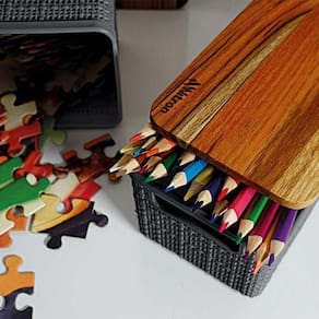 Além disso, a tampa de madeira mantém os objetos protegidos da poeira e outros agentes externos.