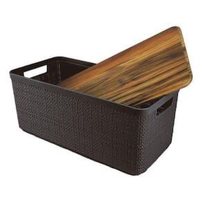 Cesto Juta Organizador Alongado Com Tampa De Madeira