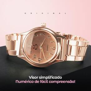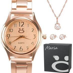 Caixa + colar brinco + relogio feminino aço inoxidável rose kit Acessórios em Aço Inoxidável Banhado - Toque Personalizado