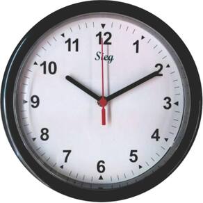 Caixa com 10 unidades de Relógio Redondo Preto Fundo Liso 24cm Aro plástico com design moderno, ideal para decorar e harmonizar o seu ambiente.