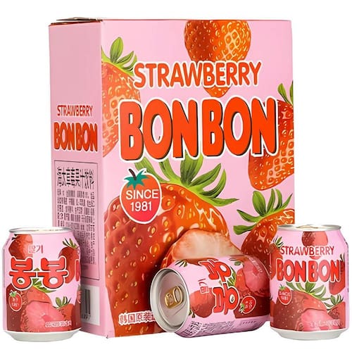 Experimente a irresistível doçura do Kit Com 12 Sucos Bonbon Morango da Haitai, com 238ml por lata.