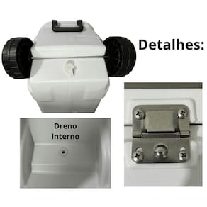 A caixa também possui um dreno para escoar o degelo e cantos chanfrados para um isolamento ideal. É o produto ideal para manter seus alimentos e bebidas frios por mais tempo durante atividades ao ar livre.