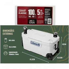 - Modelo: Caixa Térmica Marine Branca com Rodas 316 Series 100Qt 94,6 Litros - Coleman