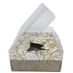 Apresentamos a novidade do Coração de Colher Para presentear quem você gosta de uma maneira especial. Utilizando o sistema fácil de abre e fecha, desenvolvemos nossa bela caixa para Coração de Colher, com suas cores diferenciadas e uma linda arte. Conteúdo: 25 Conjuntos de Caixa para Coração de Colher 250g Cada conjunto contém uma caixa de acetato e um berço Especificações: Cor da Tampa: Transparente Tamanho: 13 x 16 x 6,5 cm Comprimento X Largura X Altura Material da Caixa: Acetato 200 micras 0,20 Material do Berço: Papel Duplex Cor do berço: Dourado Floral Berço Ajustável até 3cm As caixas seguem desmontadas. Dispensa uso de cola. Fácil montagem, apenas com dobras e encaixes. Produto Exclusivo. A Embala Cristal é uma empresa focada em desenvolvimento e produção de embalagens. Marca: Embala Cristal