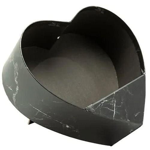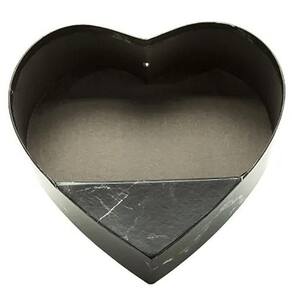 Caixa coração em papel preto, proporcionando um design sofisticado para presente.