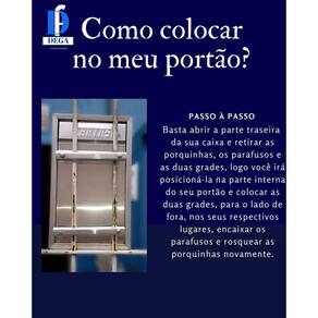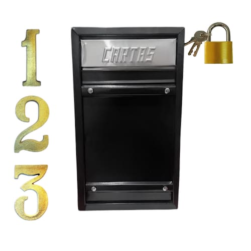 ******ACOMPANHA CADEADO DE CORTESIA********* Caixa correio chapa de aço 0.50mm, portão grade ou embutir em parede ou muro. Para grande quantidade de cartas encomendas e documentos em geral, essa é a sua solução! Pintura eletrostática. Cor preta moderna, que facilita a visibilidade na hora de entregar as suas correspondências. Caixa com profundidade em tamanho maior, COM TRINCO, PARA MANTÊ-LA FECHADA E ENTRADA PARA CADEADO ASSIM PODE, OBTER UMA MAIOR SEGURANÇA DE SUAS CORRESPONDÊNCIAS E DOCUMENTOS EM GERAL, evitando assim que a caixa fique aberta e suas correspondências e mercadorias se molhem ou caiam no chão, extraviem etc... Contém quatro parafusos e quatro porcas para maior estabilidade ao portão, sendo eles sem fenda, para garantir maior segurança ao seu produto a porta abre para o lado de dentro da residência. Largura: 23 cm Altura: 38,5 cm Profundidade: 15 cm
