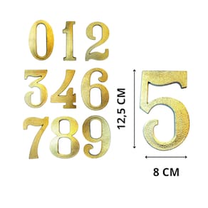 Temos os números do 0 ao 9 Número de residência fabricado em plástico grosso, plástico resistente de ótima qualidade, não quebra e não amassa , com acabamento pintura purpurina cor de ouro. Com brilho, beleza e charme para facilitar a visualização e a entrega de suas mercadorias! Material resistente a exposição do tempo. Cada número acompanha 2 furos e parafuso