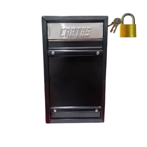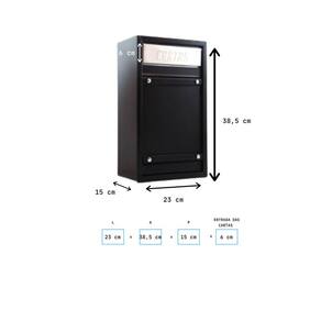 ******ACOMPANHA CADEADO DE CORTESIA********* Caixa correio chapa de aço 0.50mm, portão grade ou embutir em parede ou muro. Para grande quantidade de cartas encomendas e documentos em geral, essa é a sua solução! Pintura eletrostática. Cor preta moderna, que facilita a visibilidade na hora de entregar as suas correspondências. Caixa com profundidade em tamanho maior, COM TRINCO, PARA MANTÊ-LA FECHADA E ENTRADA PARA CADEADO ASSIM PODE, OBTER UMA MAIOR SEGURANÇA DE SUAS CORRESPONDÊNCIAS E DOCUMENTOS EM GERAL, evitando assim que a caixa fique aberta e suas correspondências e mercadorias se molhem ou caiam no chão, extraviem etc... Contém quatro parafusos e quatro porcas para maior estabilidade ao portão, sendo eles sem fenda, para garantir maior segurança ao seu produto a porta abre para o lado de dentro da residência. Largura: 23 cm Altura: 38,5 cm Profundidade: 15 cm