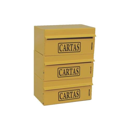 01 Caixa Correio Condomínio Frontal Para Muro Amarela 3 Módulos.