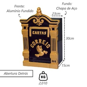 01 Caixa Correio Para Cartas Diamantina Ouro Detras 15x23x30cm.