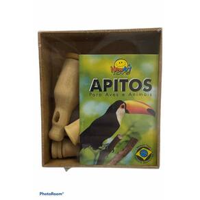 Embalagem: Caixa em MDF crú com tampa, pvc encolhível com livreto explicativo + CD para aprender o som do apito.
