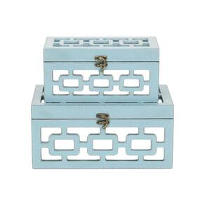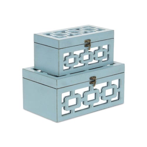- Um conjunto de duas peças (Grande, pequeno recorte de madeira), espelho coberta caixa de lembranças em uma coloração azul acinzentada