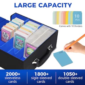 · Amplo armazenamento: a caixa de armazenamento comercial pode armazenar mais de 2000 cartas de jogo colecionáveis sem mangas, mais de 1800 cartas de uma única capa ou mais de 1050 cartas de capa dupla. Compatível com porta-cartões magnéticos e carregadores superiores