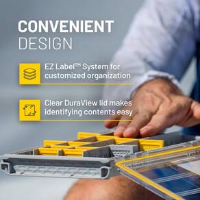 - PROJETADO PARA SER CONVENIENTE: Possui um sistema EZ Label para facilitar a organização e uma tampa de policarbonato transparente e cristalina DuraView permite que você identifique rapidamente o conteúdo. Os divisores verticais maximizam o armazenamento e a proteção.