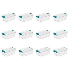 Sterilite Caixa de armazenamento com trava de 6 L, compartimento empilhável com tampa de trava, recipiente de plástico para organizar sapatos na prateleira do armário, transparente com tampa branca, - Dimensões externas: 35,5 x 19,5 cm x 12 cm. Dimensões interiores na parte inferior: 28,5 cm x 16,5 cm x 11,2 cm - As caixas de travamento são ideais para necessidades de armazenamento em toda a casa - A trava inovadora permite que a tampa levante como se estivesse articulada para fácil acesso com uma mão - Forma eficiente que economiza espaço e estilo moderno - Base transparente para visualização rápida do conteúdo e tampa embutida para empilhamento