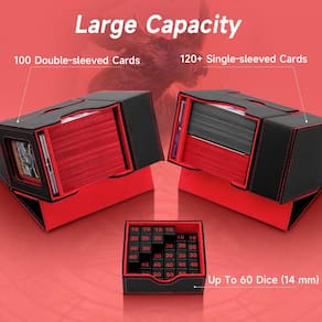 - Grande capacidade: a caixa de baralho Stepane MTG foi testada com uma variedade de capas populares no mercado e pode conter até 100 cartas de capa dupla ou 120 cartas de capa única; a bandeja de dados comporta até 60 dados (14 mm); garantindo que todos os itens essenciais do jogo estejam bem organizados e de fácil acesso