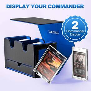 Ampla compatibilidade: perfeitamente compatível com Magic The Gathering, mtg Bloomburrow, dragon shield, Star Wars X-Wing, Game of Thrones, WoW, Force of Will, Legend of the Five Rings, Cardfight!! Vanguard, Duel Masters, futebol Panini, cartas de basquete de beisebol e muitos outros jogos de cartas colecionáveis. Especificações: Material: couro PU Cor: preto e azul Tamanho: 22,8 x 9,4 x 12 cm / 9 x 3,7 x 4,8 polegadas O pacote inclui: 1 x caixa de baralho de cartão, 2 x divisórias de cartão, 2 x porta-cartões magnéticos Observações: Medição manual, permita pequenos erros no tamanho. A cor pode existir uma ligeira diferença devido a diferentes ecrãs. Se você não estiver satisfeito com sua compra, imediatamente e ouviremos suas preocupações e nossa equipe de atendimento ao cliente encontrará a melhor solução para a situação. - Exibição de dois comandantes: a caixa de deck duplo é especialmente adaptada para jogadores de EDH de comandante; através da janela de exibição, você pode facilmente olhar para o conteúdo da caixa sem abrir a caixa; dois porta-cartões de 35pt incluídos podem mostrar o cartão claramente - Durável e funcional: a caixa de baralho de cartas é feita de exterior de couro PU que oferece boa proteção e interior de microfibra macia para proteger seus cartões de arranhões; a ampla abertura em forma de U garante fácil acesso aos seus cartões, tornando-o conveniente - Grande capacidade: esta caixa de baralho funciona com cartas sem manga, cartões de manga única, cartões de manga dupla; cada capa pode conter mais de 140 cartas de manga única ou mais de 100 cartas de manga dupla; duas divisórias de cartão incluídas permitem que você classifique cartas diferentes - Magnético forte: a caixa de armazenamento de cartões possui um fecho magnético forte que garante que a caixa permaneça firmemente fechada mesmo que seja tombada, fornece boa proteção para todos os tipos de cartões; o design da bandeja de dados ajuda você a armazenar dados e contadores - Boa escolha para colecionadores de cartas: o estojo de baralho UAONO para cartas colecionáveis é a escolha ideal para jogadores, adequado para armazenar cartas de jogo, cartões esportivos etc. ; Desfrute de jogos de cartas com seus amigos ou familiares; se você tiver alguma dúvida, sinta-se à vontade para entrar em contato conosco
