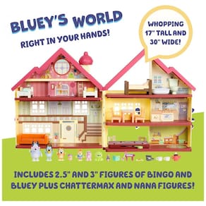Recrie momentos memoráveis do show Bluey com o Playset Ultimate Lights Sounds Playhouse. Este Playset exclusivo vem com figuras de Bluey, Bingo, Chattermax e Nana, além de uma pilha de brinquedos e acessórios para brincar. Com 17 polegadas de altura e 30 polegadas de largura, este Playset totalmente mobiliado possui três andares para explorar, incluindo quartos, banheiro, cozinha, sala de jantar e sala de estar.
