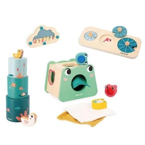 Caixa de Brinquedos Janod J04063 Aventuras aguardam com uma caixa Janod: uma caixa completa composta por 4 brinquedos projetados com o aprendizado inicial das crianças em mente. Esta caixa foi desenvolvida em colaboração com um especialista em psicomotricidade para ajudar a promover gradualmente o desenvolvimento psicomotor do seu filho e futuras aquisições de habilidades. O conteúdo inclui uma caixa de classificação de formas sensoriais, uma pirâmide de 3 peças com 2 patos de madeira, um lindo de chuva e um quebra-cabeça de 3 peças. Cada um desses 4 brinquedos de madeira e papelão ostenta uma função diferente de estimulação infantil. Um folheto detalhado também é fornecido para ajudá-lo a aproveitar ao máximo a caixa. Ele fornece informações sobre as áreas de desenvolvimento para crianças de 12 meses, além de descrições de cada brinquedo e seu valor educacional. Há 4 caixas Janod no total 12 meses, 18 meses, 24 meses e 36 meses ; cada uma delas foi projetada especificamente para a faixa etária em questão. Brinquedo de aprendizado inicial de madeira e papelão FSCTM para crianças de 12 meses ou mais. Marca: Não Informado Ean: 3700217340636