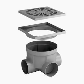 Uso indicado: Captação de água de chuva, junção de tubulações e mudanças de direção/declividade; inspeção e limpeza pela tampa superior