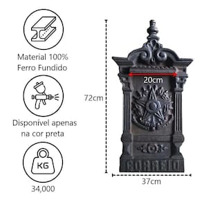Caixa de Correio Cartas Colonial Brasão Sem Pé Ferro Fundido