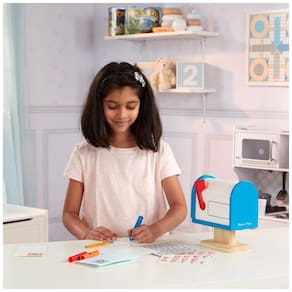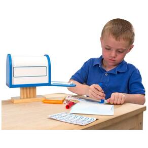 A caixa de correio de brinquedo da Melissa Doug é um conjunto clássico de atividades para crianças de 4 a 6 anos. Feita de madeira resistente, ela vem com uma bandeira vermelha brilhante e adesivos com letras e números para personalização. A porta articulada se abre para dar espaço para dois cartões postais e uma carta pautada e um envelope, todos reutilizáveis com os lápis de limpeza que acompanham o conjunto. O conjunto de atividades inclui ideias lúdicas para manter a caixa de correio cheia de correspondência criativa e muita diversão. A Melissa Doug é conhecida por seus produtos lindamente projetados que estimulam a imaginação e a criatividade das crianças.