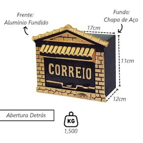 01 Caixa de Correio Para Cartas Portuguesa Detras 13x24x17cm.