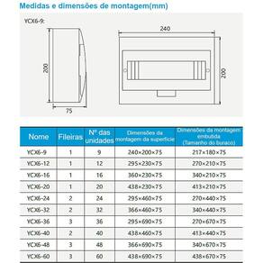 Caixa de embutir termoplástica 24 disjuntores modelo ycx6-24 A eng automação é uma empresa que oferece soluções para automação, elétrica, hidráulica e pneumática. Buscamos soluções simples e práticas para nossos clientes. Fornecemos produtos para aplicações de projetos simples diy , projetos de teste e até mesmo para projetos de alta performance, pois temos uma alta diversidade de produtos de variadas marcas e variados tipos de aplicação. Somos comprometidos a oferecer artigos que supram as necessidades de nossos parceiros sempre com o melhor custo-benefício. Conte conosco para concretizar seus projetos com qualidade e eficácia Especificações: - dimensões: 47 x 30 x 12mm - peso: 1,8 kg - prova de água - grau de proteção: ip66 Funções: -evitar sobrecargas e curtos circuitos nesses equipamentos, pois atuam na tentativa de impedir que sejam inativados ou invalidados por grandes correntes Todas as dúvidas podem ser auxiliadas pós-venda. Temos técnico disponível para auxiliar e ajudar com dúvidas técnicas ou de instalações. Marca: Não Informado
