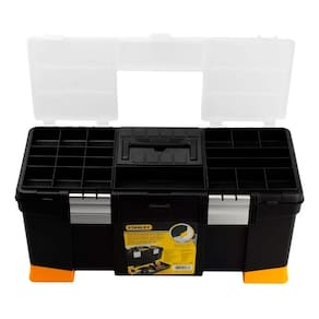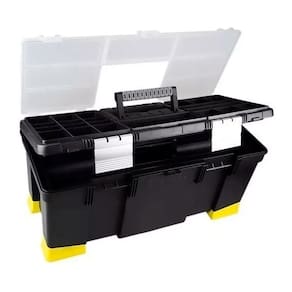 A Caixa De Ferramentas 22" 22-080 é feita de polipropileno e possui fechos metálicos. Ela tem uma alça emborrachada, organizador transparente para armazenamento de peças pequenas, trava dupla de alumínio, bandeja interna removível com régua e uma estrutura única, com diversos pontos de reforço dentro da caixa, garantindo a melhor durabilidade entre os organizadores plásticos.