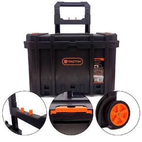 A caixa de ferramentas modular com rodas 583,0003 - Tactix é uma solução prática e versátil para o transporte e armazenamento de ferramentas. É indicada para carregar ferramentas em atividades diversas. Marca: Não Informado