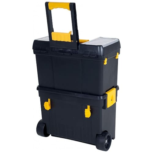 CAIXA DE FERRAMENTAS PORTÁTIL Esta caixa de ferramentas rígida possui duas rodas de nylon de e uma alça dobrável com aderência confortável, para que você possa levar tudo o que precisa para trabalhos fora do local. ZENAMENTO DE FERRAMENTAS 24 compartimentos totais de peças pequenas, duas bandejas de ferramentas removíveis e um compartimento de fundo profundo garantem que você tenha espaço para todas as suas ferramentas e suprimentos essenciais enquanto estiver em movimento. DESIGN ROBUSTO Esta caixa de ferramentas com rodas é feita de polipropileno durável e metal para manter suas ferramentas elétricas e manuais seguras e protegidas durante viagens ou movimentação em locais de construção difíceis. GANCHOS DE CABO Nunca se preocupe com cabos de extensão perdidos ou emaranhados com os ganchos de cabo conectados. Eles também são ótimos para guardar rolos de fita e outros pequenos suprimentos Marca: Não Informado