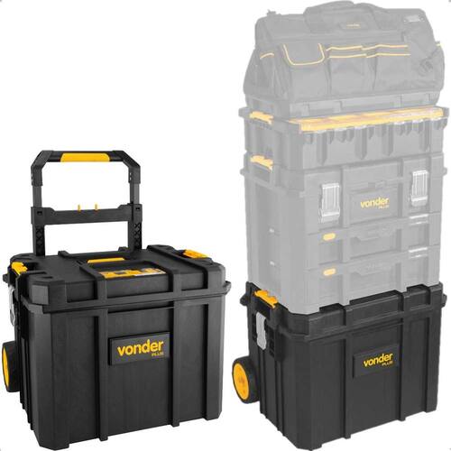Html-body data-pb-style=MX2913Rjustify-content:flex-start;display:flex;flex-direction:column;background-position:left top;background-size:cover;background-repeat:no-repeat;background-attachment:scrollCaixa para Ferramentas Vonder Plástica com Rodas CRV 900 - Vonder OficialA Caixa para Ferramentas Vonder CRV 900 é a solução ideal para profissionais exigentes que buscam eficiência, segurança e praticidade no armazenamento e transporte de ferramentas. Com design robusto e altamente funcional, ela oferece a versatilidade necessária para organizar, transportar e proteger seus equipamentos em qualquer tipo de ambiente de trabalho. Pensando no conforto do usuário, a CRV 900 é equipada com uma alça retrátil e rodas emborrachadas, que garantem maior facilidade no transporte, mesmo em terrenos irregulares. Seu design com rodas permite deslocamentos ágeis e seguros, sem o esforço de carregar peso, o que é essencial para quem precisa de mobilidade em ambientes de trabalho dinâmicos e desafiadores. Com dimensões de 545 mm comprimento x 440 mm largura , a Caixa CRV 900 oferece amplo espaço interno para armazenar ferramentas de maior porte, como chaves, martelos e outros equipamentos pesados. Sua capacidade de carga de até 50 kgf garante que você possa transportar com segurança uma grande quantidade de ferramentas sem comprometer a estrutura da caixa. Além disso, o design inclui uma bandeja removível, ideal para itens menores, permitindo a organização e o fácil acesso a peças e acessórios essenciais. Com a vedação IP53, a Caixa CRV 900 é projetada para resistir a condições adversas, como umidade e poeira. Essa vedação impede que agentes externos danifiquem o conteúdo da caixa, garantindo que suas ferramentas permaneçam protegidas e seguras. As travas metálicas reforçadas e a porta-cadeado oferecem uma camada adicional de segurança, permitindo que você deixe sua caixa em locais públicos ou durante o transporte sem preocupações. Uma das grandes vantagens da Caixa CRV 900 é sua capacidade de ser acoplada a outros produtos da linha Vonder, como a Bolsa em Lona BL 900, o Organizador Plástico OPV 900 e a Caixa Plástica CPV 900 itens vendidos separadamente . Essa compatibilidade torna a CRV 900 extremamente versátil e perfeita para quem busca um sistema de organização completo e integrado, de acordo com as suas necessidades específicas. Com a Caixa para Ferramentas Vonder CRV 900, você tem um produto que não apenas atende às suas necessidades de armazenamento e transporte, mas também proporciona mais segurança e conforto, aumentando a produtividade e a eficiência no trabalho. Ideal para profissionais que buscam qualidade, praticidade e resistência.Especificações- Material tipo/composição : Polipropileno- Cor da caixa: Preta e amarela- Comprimento mm : 545 mm- Largura: 440 mm- Altura: Com cabo recolhido 720 mm. Com cabo estendido 1.040 mm- Capacidade de carga kgf : 50 kgf- Massa aproximada peso kg : 8,450 kg- Observação: IP53Itens inclusos - Caixa para Ferramentas Vonder CRV 900Garantia- 3 meses com o Fabricante