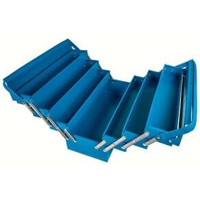 Com sete gavetas articuladas, essa caixa permite a visualização simultânea de todas as divisórias, tornando o uso mais ágil e eficiente. Seu mecanismo sanfonado é fluido e resistente, garantindo que as gavetas se abram de forma estável e segura, mesmo em ambientes de trabalho intensos. O acabamento azul dá um toque moderno e facilita a identificação visual.