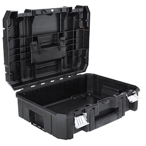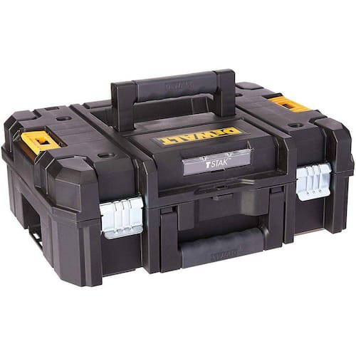 Descrição: Plataforma flexível permite diferentes combinações. Todas as unidades podem ser empilhadas uma sobre a outra, conectadas por travas laterais duráveis. Alça bi-material no topo de cada unidade para levantamento fácil e confortável. Fechos metálicos reforçados e resistentes a ferrugem. Aplicação: Ideal para armazenagem e transporte de materiais e ferramentas elétricas. Informações Técnicas · Marca: DEWALT · Modelo: DWST17807 · Dimensões: O Altura: 6-7/8 (175 mm) O Largura: 17-1/4 (438 mm) O Comprimento: 13 (330 mm) Itens Inclusos: · 1 Caixa de Ferramentas