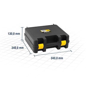 DETALHES TÉCNICOS Comprimento: 34,0 cm Largura: 34,0 cm Altura: 13,0 cm Material: Polipropileno Capacidade de carga (kgf): 12,0 kgf Cor da caixa: Preta e amarela Modelo: VD 6002 Massa aproximada (peso): 0,65 kg Observação: Não acompanha ferramentas