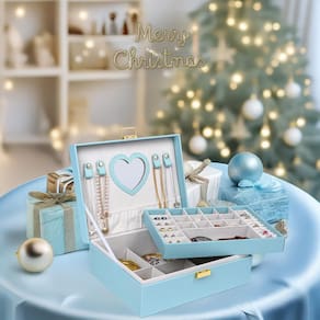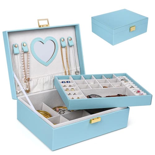 - Ótima opção de presente: esta caixa de joias para meninas é embalada em uma caixa colorida, o que a torna um ótimo presente. A caixa organizadora de joias de 2 camadas é o presente perfeito para você, seus amigos, aniversário da esposa ou da mãe, Natal, Dia dos Namorados, Dia das Mães e aniversários.
